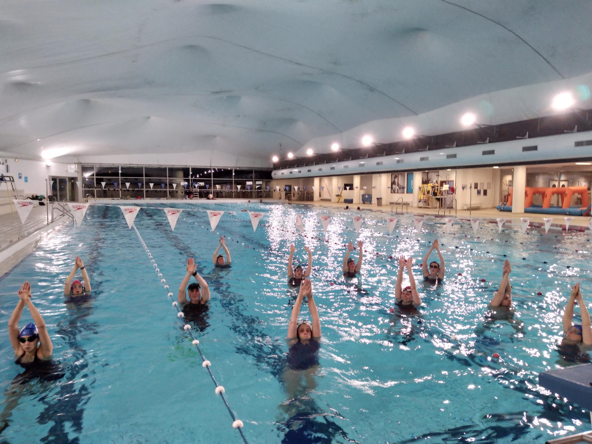 Au 20 décembre, dans une ambiance estivale– une eau à 29°C en raison de l’accueil des classes de maternelles- Myriam a convaincu des nouveaux inscrits de rejoindre les « accros » à la première séance de fit'palmes durant laquelle la mono-palme a été laissée de côté.